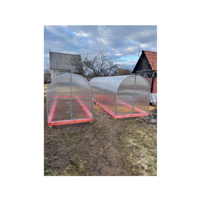 В разобранном виде теплица состоит из отдельных сварных рам в виде дуги. Транспортные габариты 2000х1700 мм.