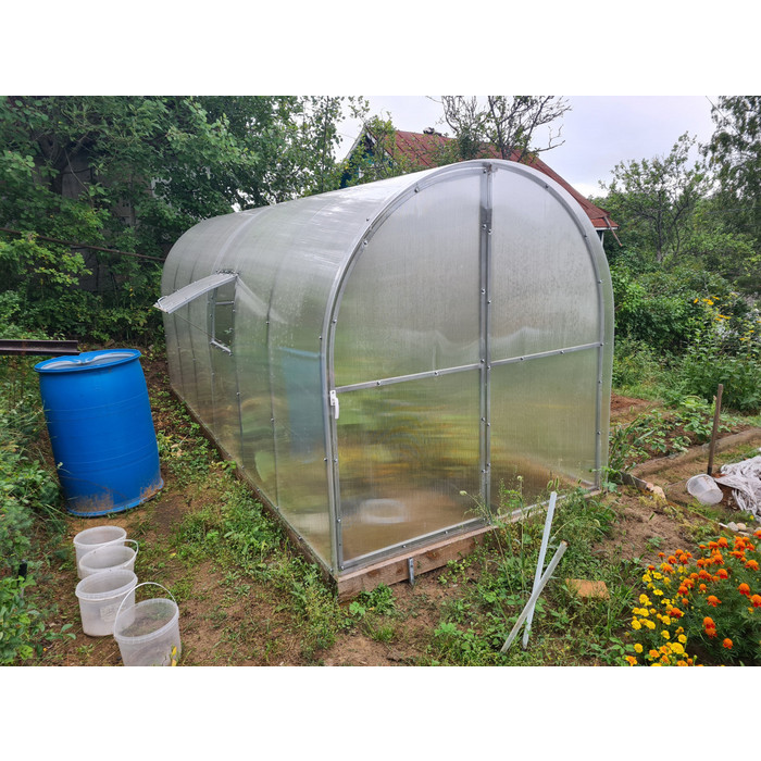 В разобранном виде теплица состоит из отдельных сварных рам в виде дуги. Транспортные габариты 2000х1700 мм.