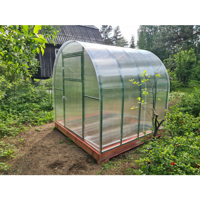 • практически прямые боковые стороны теплицы позволяют использовать пространство по максимуму и выращивать культуры, плотно прилегающие к стенкам