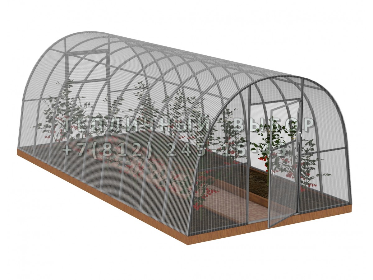 • надежная и долговечная конструкция за счет частой установки дуг в теплице (междуговое расстояние 65 см) и прочной профильной трубы (20х40мм)