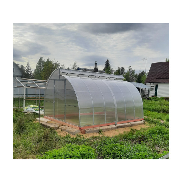 • арочная форма теплицы способствует скатыванию снега в зимний период и равномерному распределению солнечного света, в теплице отсутствуют неосвещенные участки;