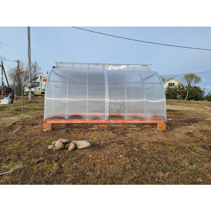 • длина фрамуги соответствует длине теплицы, высота 22 см, открывается изнутри и фиксируется в открытом состоянии с помощью ограничителя;