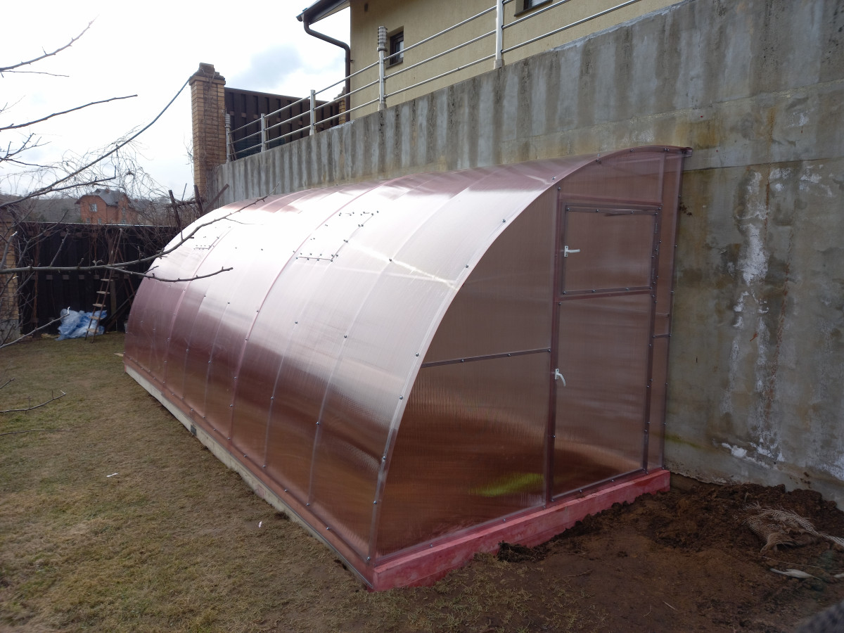 Теплица из поликарбоната Усиленная Пристенная 2,3х12 h=2.1 м профиль 25х25 мм