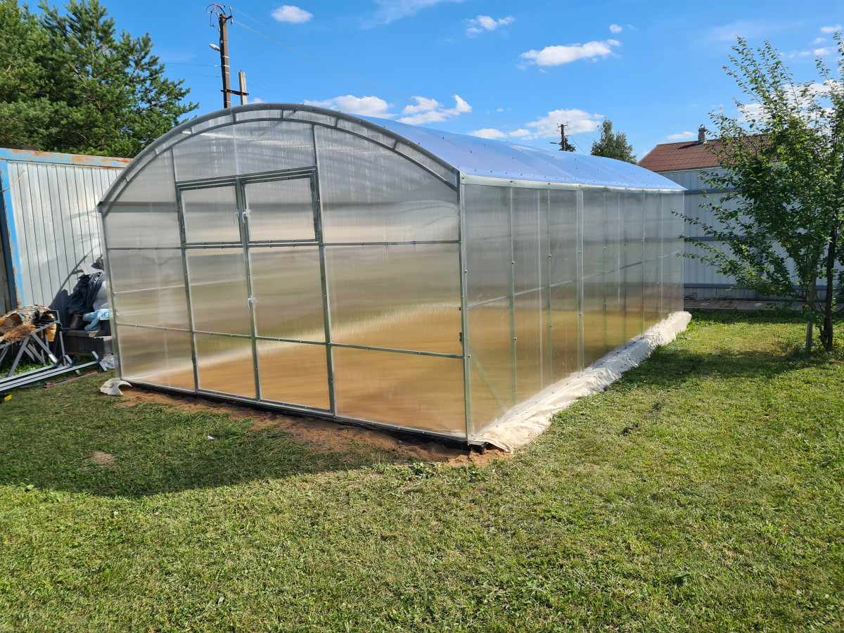 Возможна самостоятельная сборка по подробной инструкции. Сборка теплицы монтажниками-профессионалами компании занимает порядка 4 часов. В качестве основания рекомендуется использовать бетонный, либо деревянный фундамент из бруса. Предварительно брус необходимо обработать антисептиком. Полный комплект состоит из: