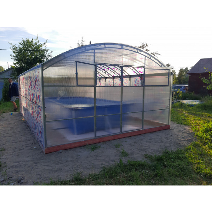 • широкая 4 м, ширина теплицы позволяет организовать 3 широкие полноценные грядки с комфортными проходами между ними;