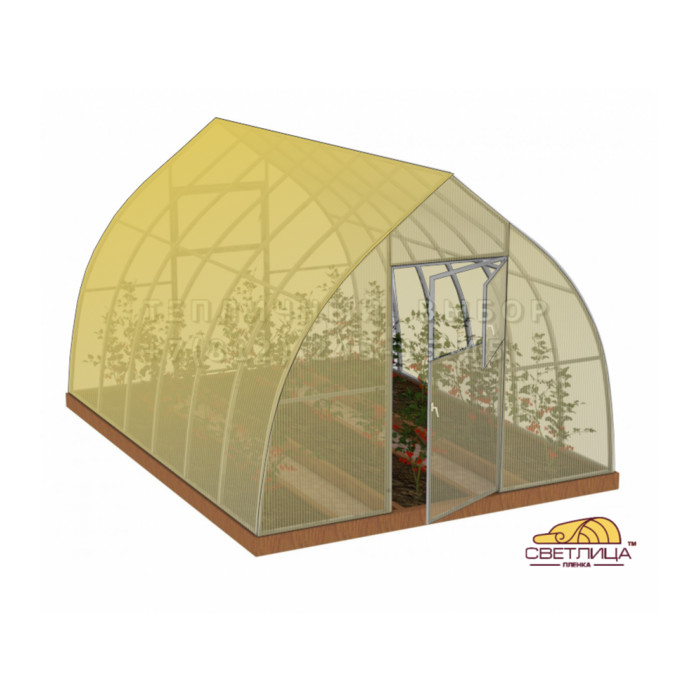 • укрывной материал - легендарная пленка «Светлица» толщиной 150 мкм, имеет уникальный состав, который делает ее прочной, эластичной и долговечной (не менее 7 лет без снятия на зиму)